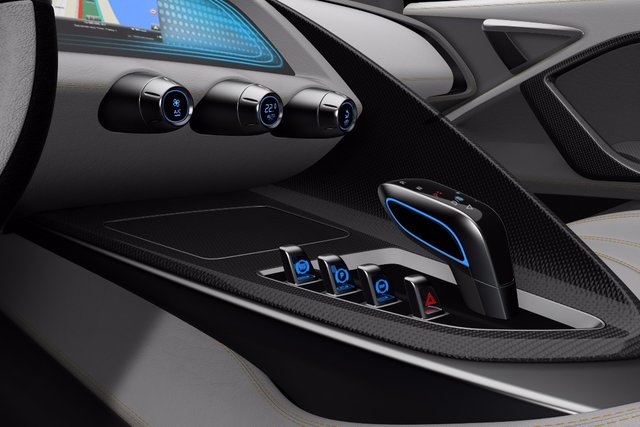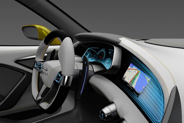 Le traitement du design de l'habitacle ne verse, en revanche, pas du tout dans le revival, et affiche un design très futuriste, faisant penser à un cockpit d'avion de chasse..